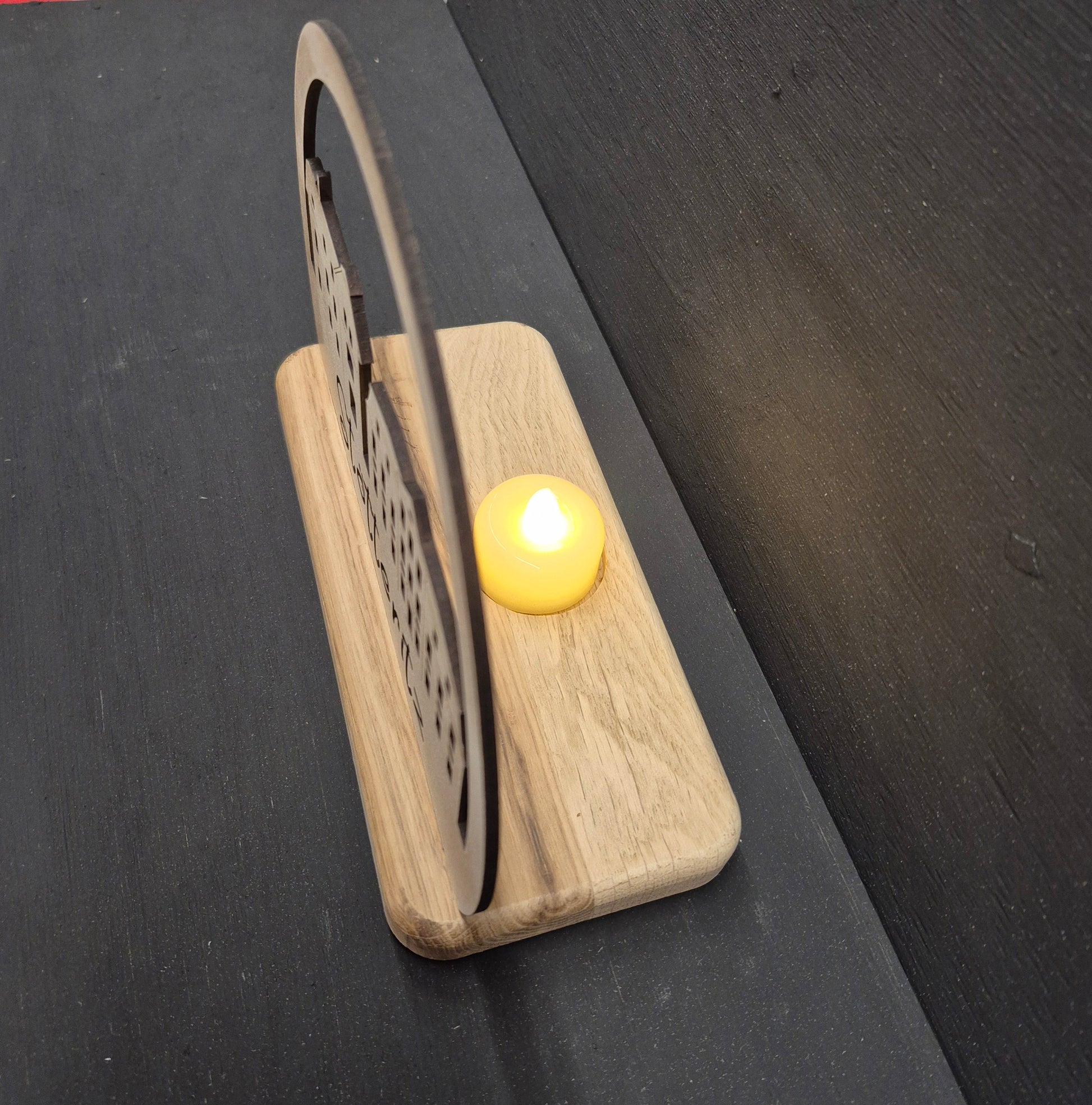 Material: Sockel: Eiche, Bogen: MDF, LED Teelicht batteriebetrieben
